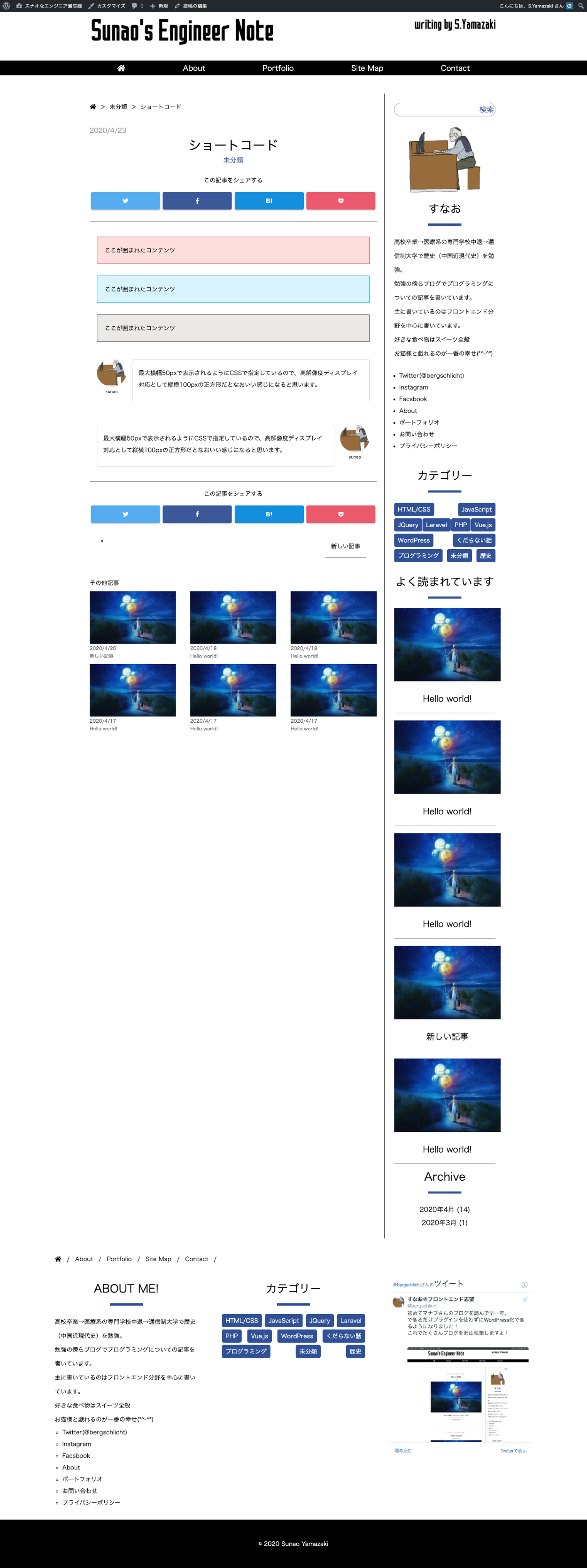 このサイトを修正・改良を行いことを想定し、中長期的に運用することを見通して記事を投稿する際に必要なショートコードの実装、カスタムフィールドやウィジェットなどサイトを更新する際に比較的高頻度に書き換えをする必要な箇所を特に拘りました。