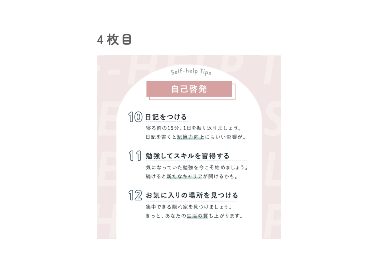 - 各Tipsごとの文章が長すぎたと感じております。忙しいターゲットに読むのに億劫な気持ちを持たせないためにも、もう少し易しく短い文章にするべきだったと反省しました。