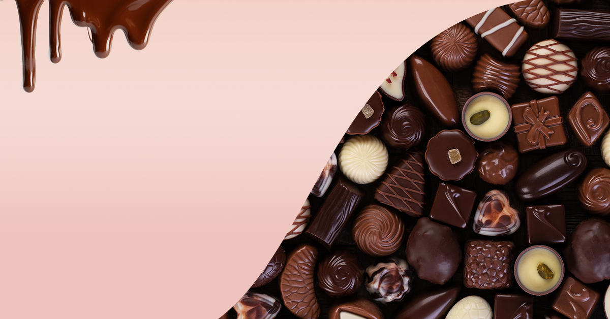 チョコレートがたくさん並んでいる画像を選びました。
