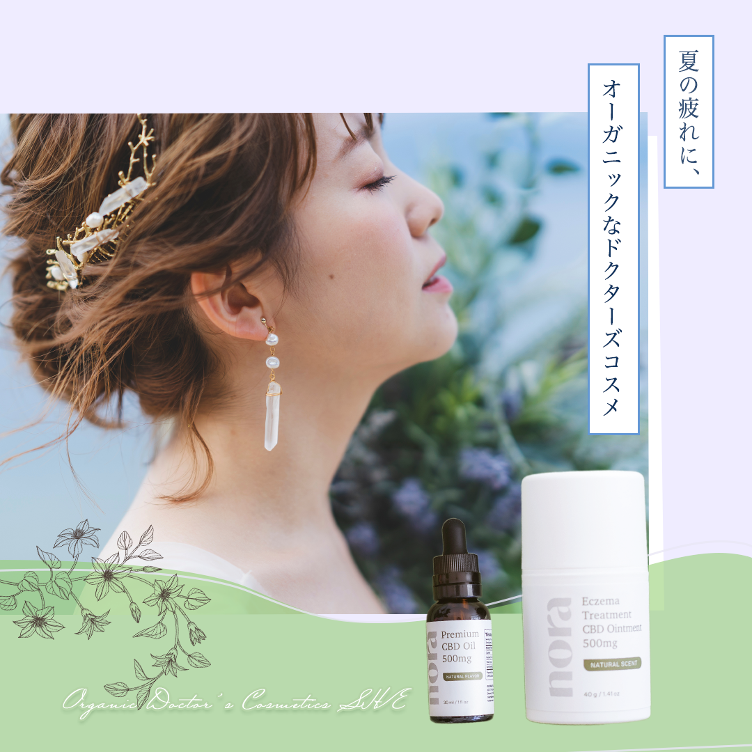 配色:あしらいは、女性の背後にあるラベンダー、植物、背景の色にトンマナに合わせるように、紫・緑・青でまとめました。