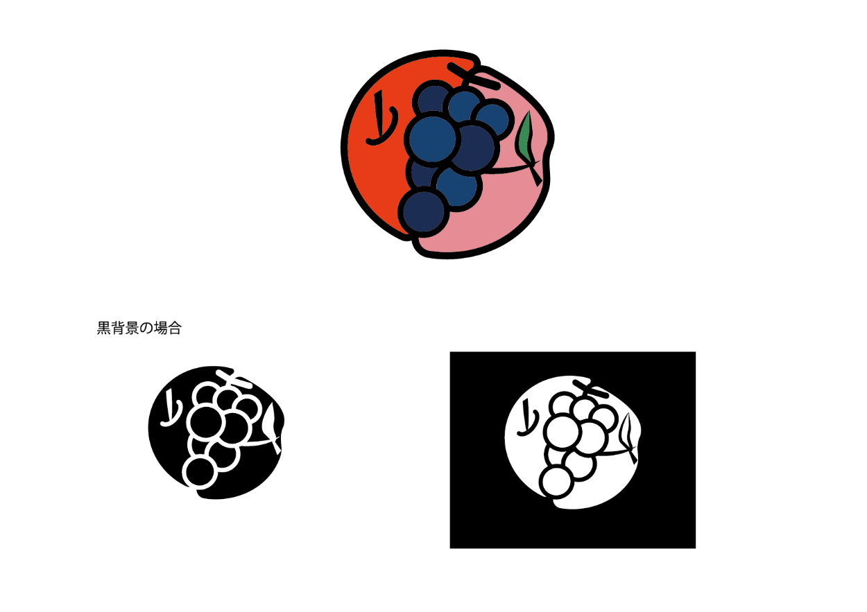 また、「りんご」と「もも」のモチーフの真ん中に市を代表するもう一つのフルーツ「ぶどう」を配置することで、代表フルーツ3種類を前面に出し、ロゴマークを見た人が