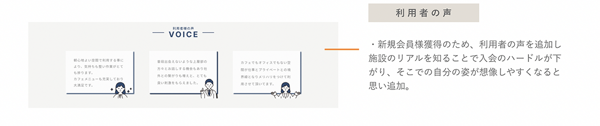・ユーザーの気持ちに寄り添い、どの項目があれば安心して利用できるか、何を知れば興味をもってもらえるかを意識し制作する事の大切さ。