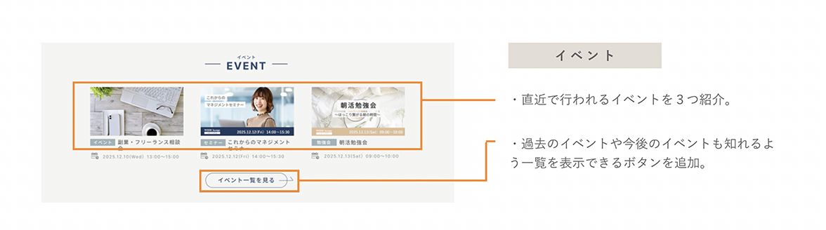 ・クライアント様から提示されたWF(ワイヤーフレーム)に★部分5箇所を追加し、よりわかりやすく、伝わりやすい構成に修正して作成しました。