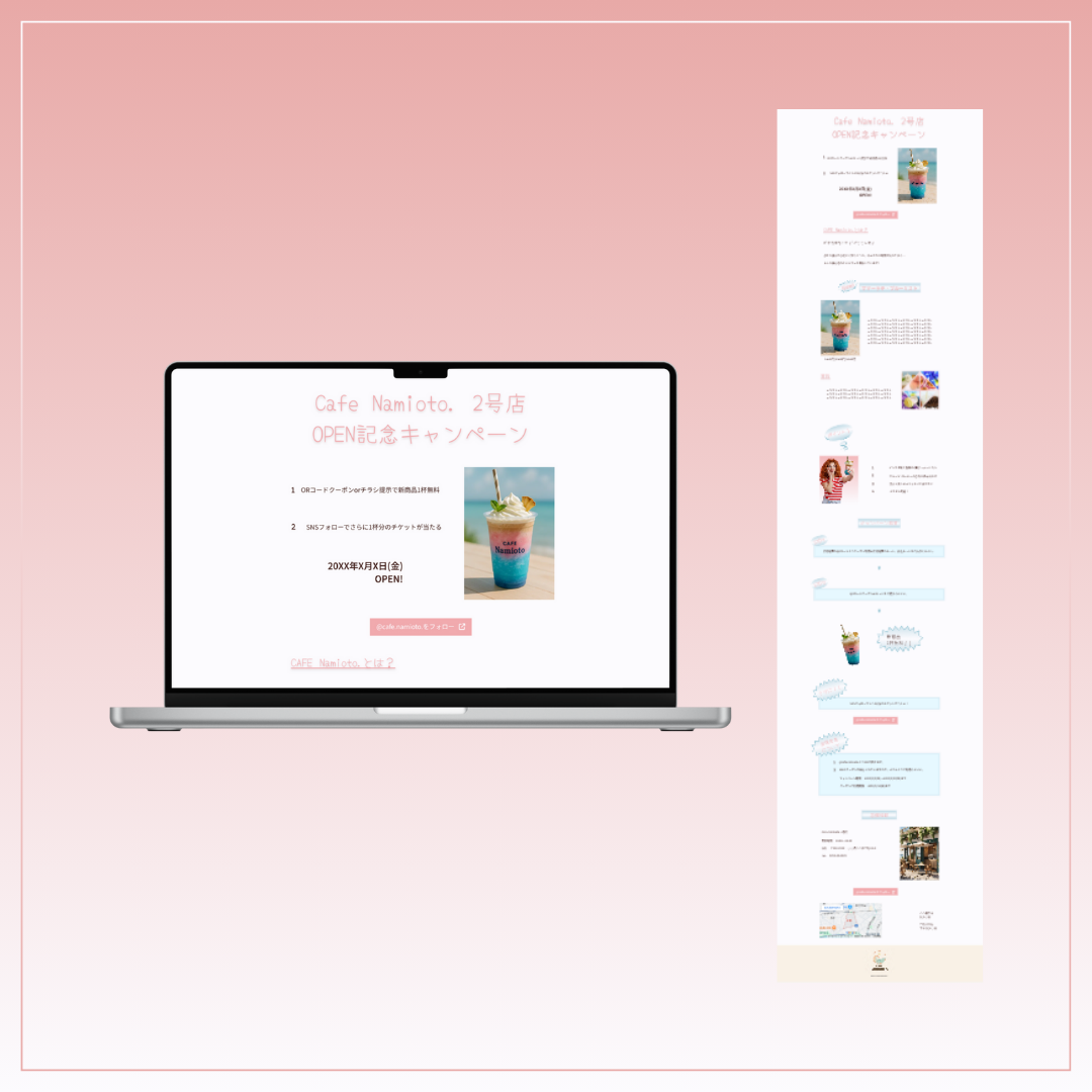 カフェの新店舗Cafe Namioto.2号店(仮)OPEN記念キャンペーンのLPを制作しました。