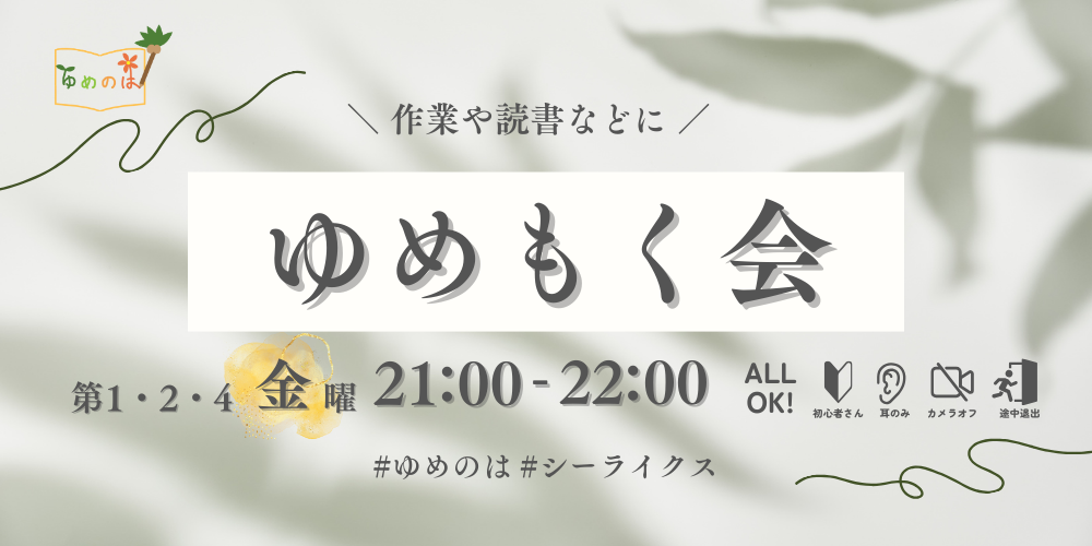 「ゆめもく会」を中央に大きく配置し、余白を活かしたシンプルな構成で視認性を高めました。
