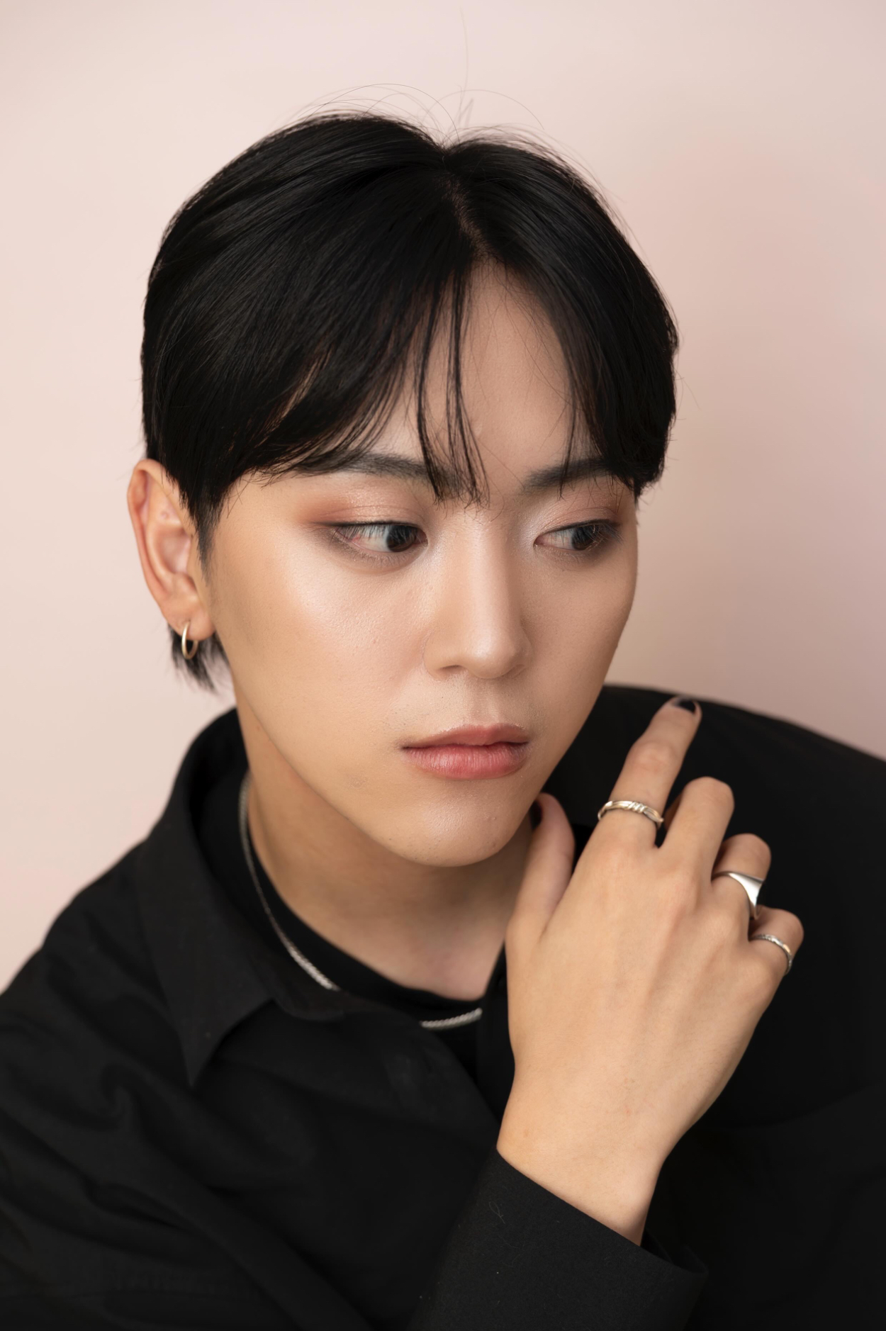 授業内の課題で自分で決めたブランドをオマージュしたヘアメイクを行った。シュウウエムラのメンズメイクをテーマに、アイシャドウはピンクを全体に使用し華やかな印象になるようメイクをした。メンズらしさも残せるよう、アイブロウやシェーディングで骨格や凛々しさも意識した。