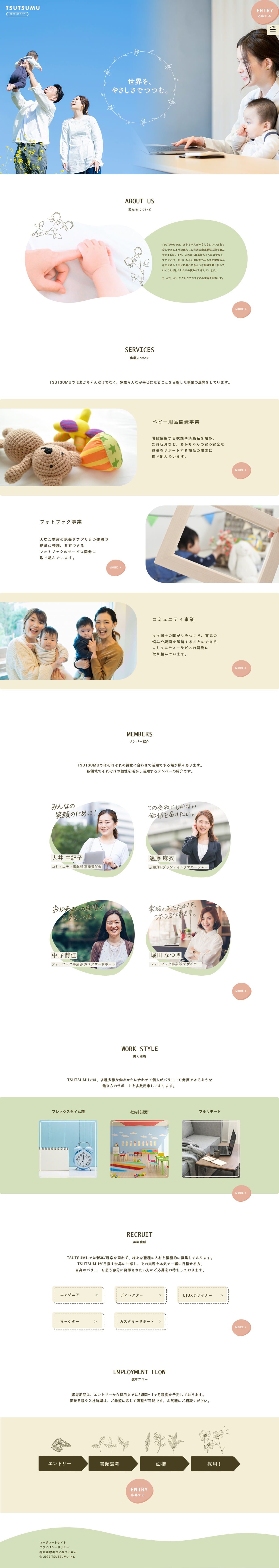 デザインスクールの「SHE likesマルチクリエイターコース」の課題として、ベビーグッズ企業のリクルートサイトを制作しました。クライアントからの要件書をもとにペルソナ設定・WF制作・デザインカンプ制作・実装までおこないました。