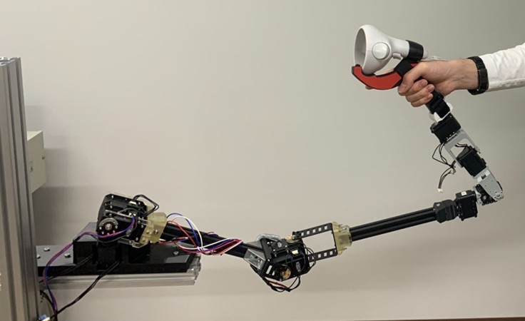 VRを活用した練習環境に、ユーザの腕の動きを物理的に誘導するロボットを組み合わせることで教育効果を高める挑戦をしました。