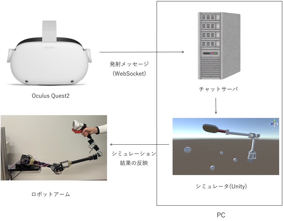 - VR空間内でピンポン玉が発射されるとその情報がサーバに送信される