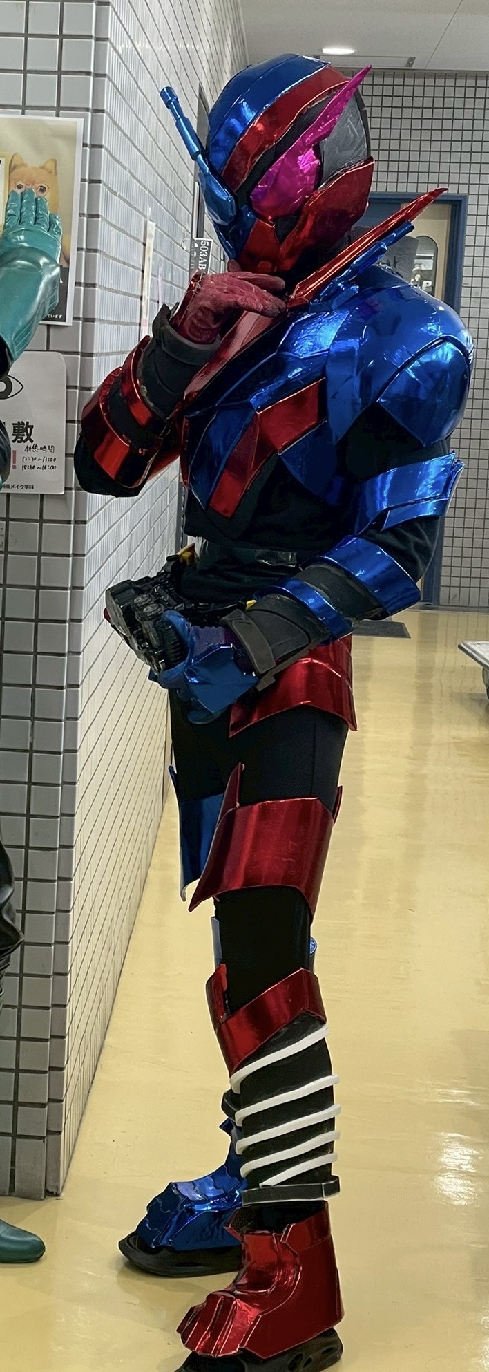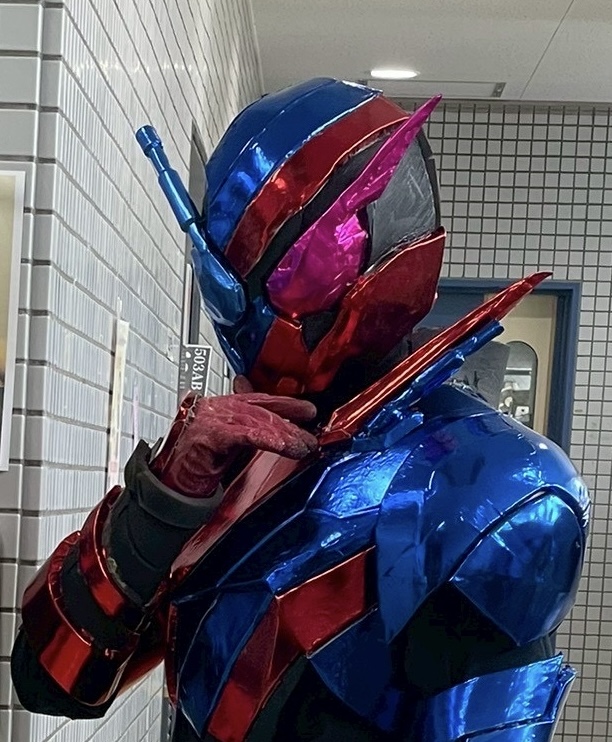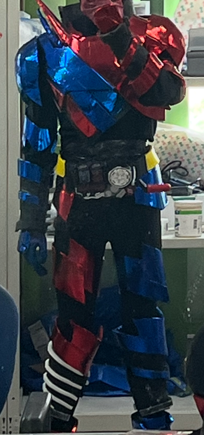 仮面ライダービルド(コスプレ) リョースケ 仮面ライダービルド(ラビットタンク)のコスプレ衣装です。サンペルカ、ジョイントマット(100均)、メタリックの合皮等使用しました。制作期間10日ほどで制作しました。