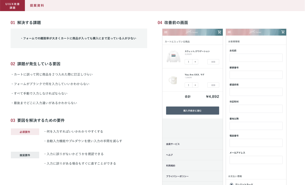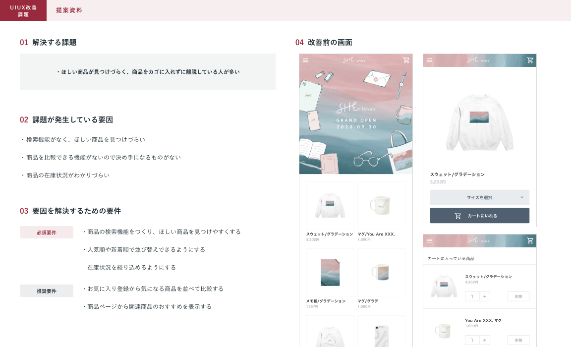 SHElikes MULTI CREATOR COURSEの実践課題としてUI/UX改善提案に取り組みました。figmaを使用したデザインカンプ・提案資料の作成に挑戦しました。