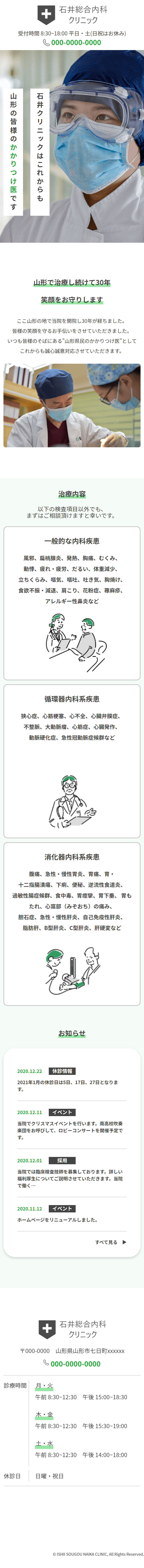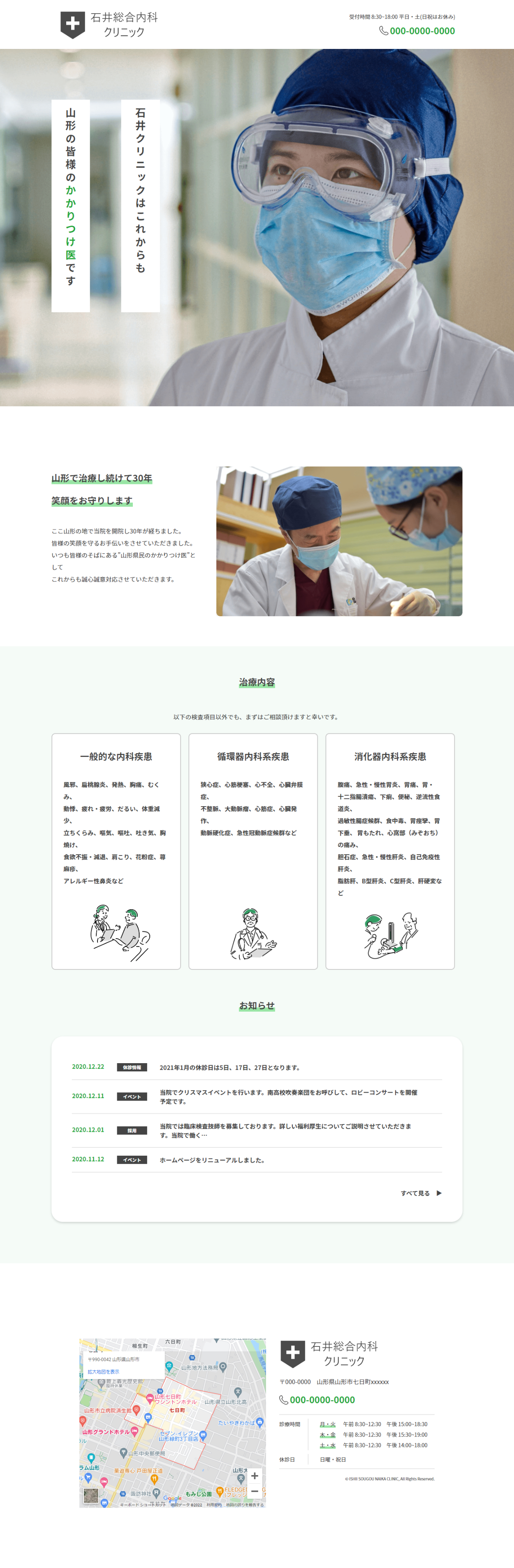 石井総合内科クリニック ヒロシ Webコーダー OVERVIEW デザインカンプからのコーディング YEAR 2022 Adobe XDデータをもとに、架空サイトのコーディングを行いました。Basic認証をかけております。下記ユーザー名・パスワードを使用してください。 ユーザー名:userパスワード:ishii-141 WEBSITE