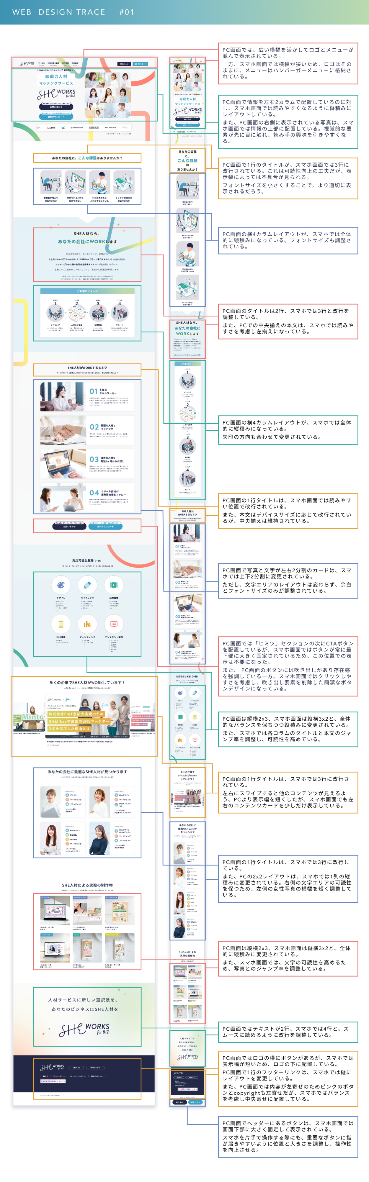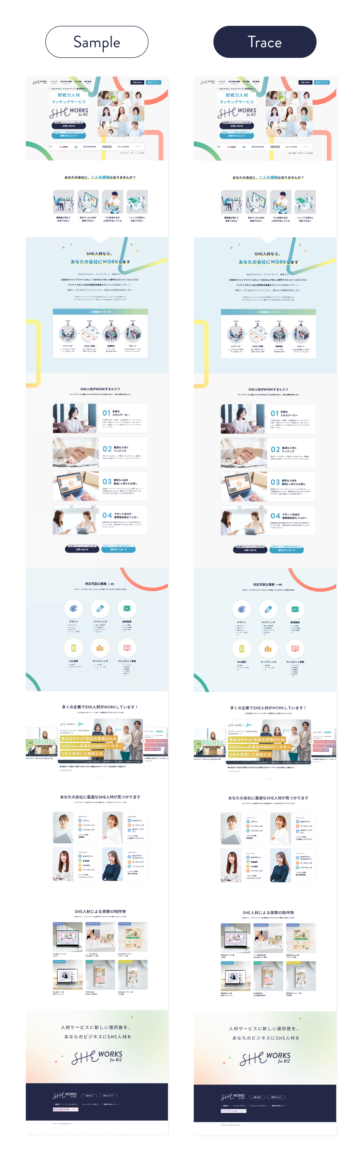 SHE株式会社が提供する「SHE WORKS(法人向け)」のLPをトレースしました。