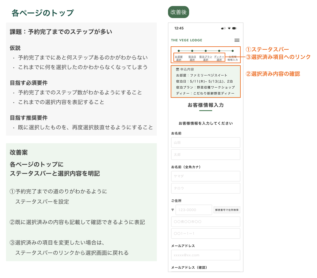 - これまでの自身の予約申し込みの経験にもとづいて、どういった機能があれば安心して予約完了まで進むことができるかを考えました。