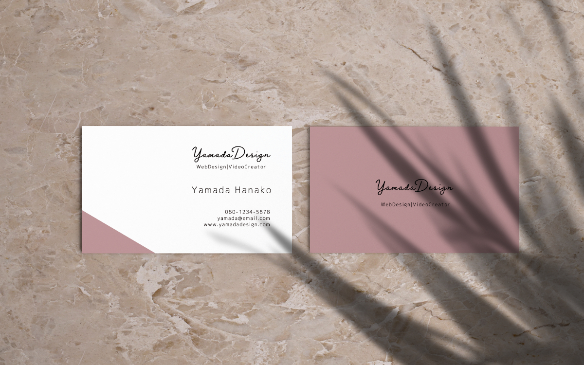 架空のWEBデザイナー、動画クリエイターの名刺 honoka 株式会社エピシャルム(WEBデザイン等) OVERVIEW 女性らしくかつ落ち着いた大人なイメージ 【テーマ】女性らしく、落ち着いた大人っぽさのあるWEBデザイナー、動画クリエイターの名刺【要望】女性らしく且つ、甘くなりすぎないような落ち着いたイメージでYamadaDesignのロゴを裏表面に入れて欲しい