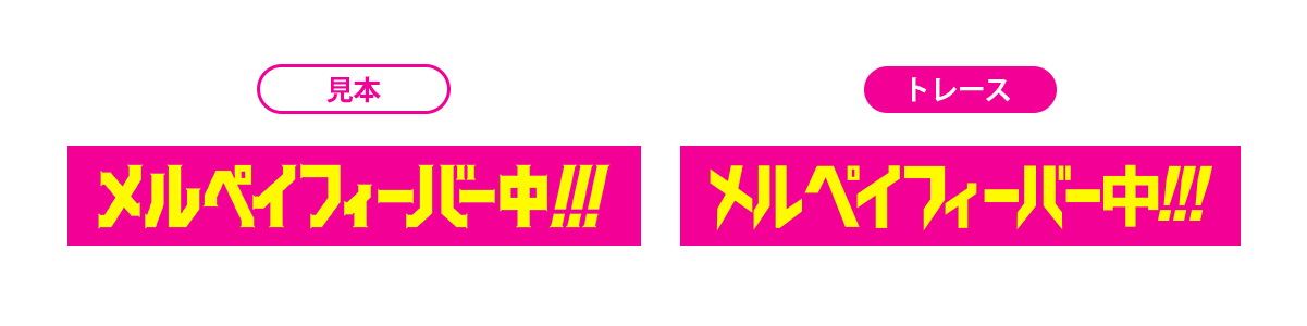 「メルペイフィーバー中!!!」のテキストはフォント探しにかなり時間をかけましたが、最終的には見本と違っても「フィーバー感」のあるフォントを使用することで、バナー製作者のメッセージを表現できるようにしました。
