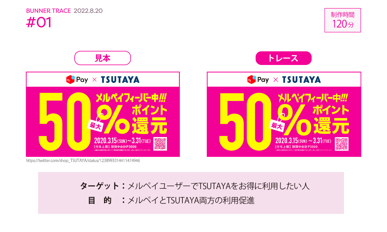 メルペイとTSUTAYAのコラボキャンペーンのバナーをトレースしました。