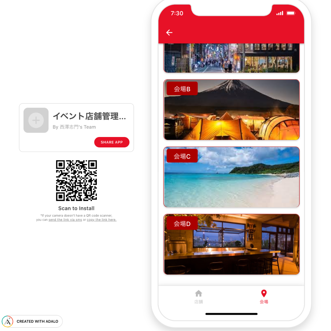 【ノーコードAdalo 開発事例】イベント店舗管理アプリケーション