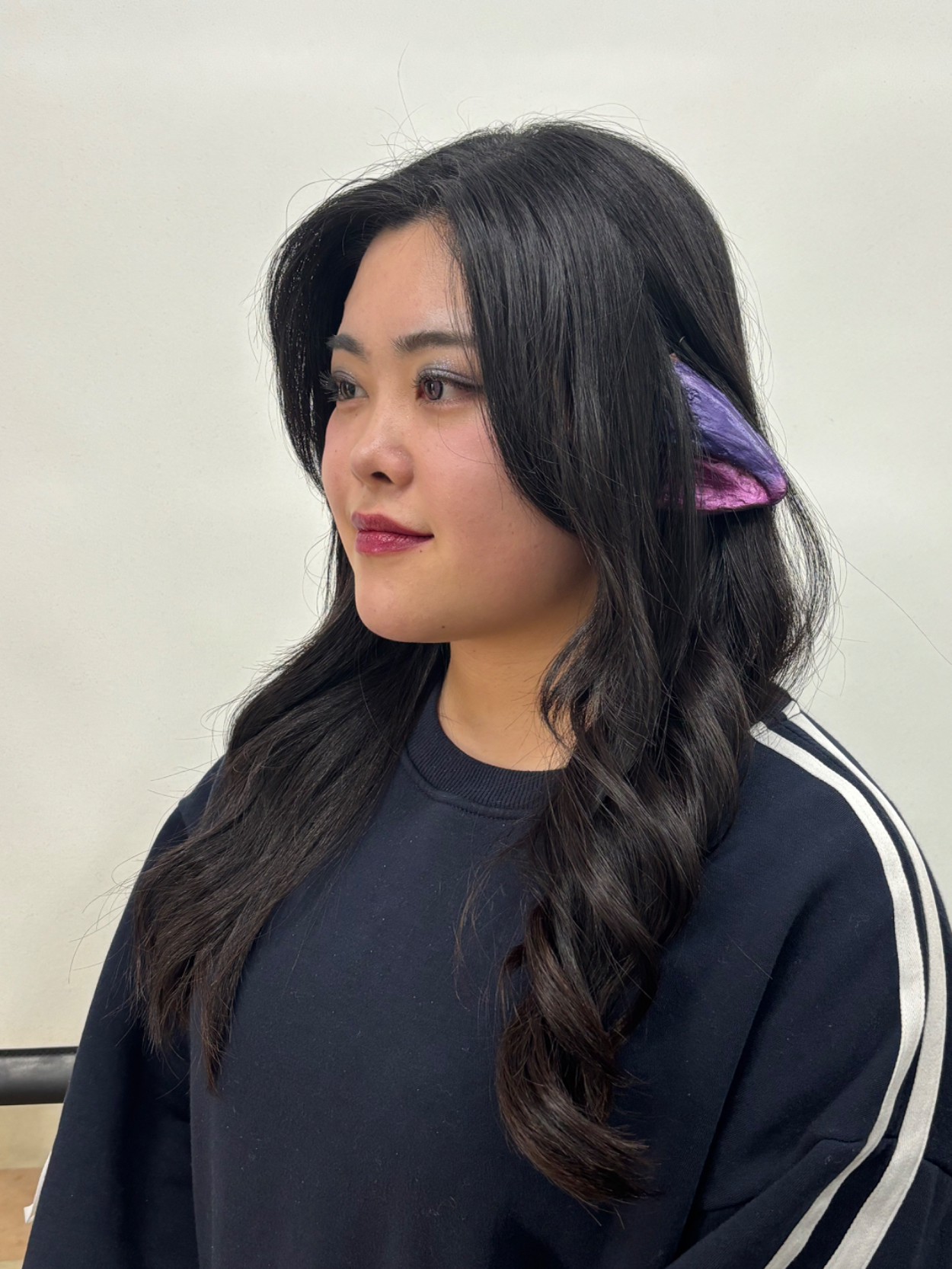 耳ピースメイク イイダ 専門学生 特殊メイクでエルフ耳ピースを制作し、メイクも施しました。エルフ特有の丸みのあるフォルムを意識し、細かな毛流れや質感を丁寧に表現し、異素材との調和を図りながらトータルバランスを整えて、メイクも紫の同一トーンで統一し、世界観を構築しました。