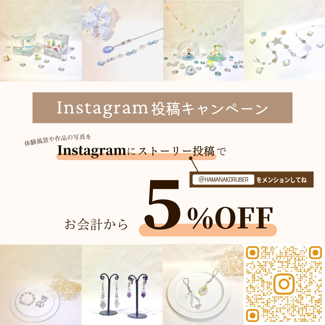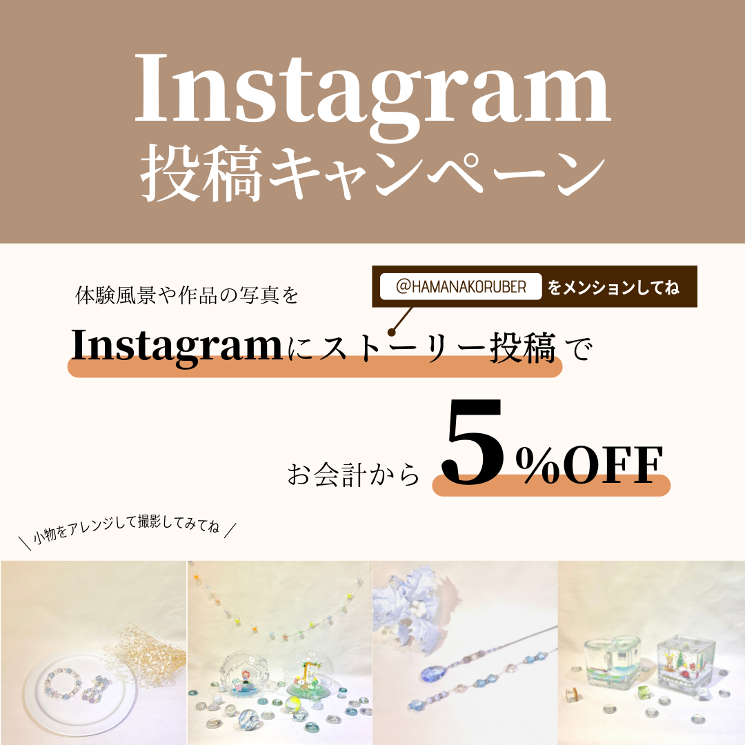 体験工房にて作った自分の作品をInstagramにメンション投稿した方に会計から5%割引する