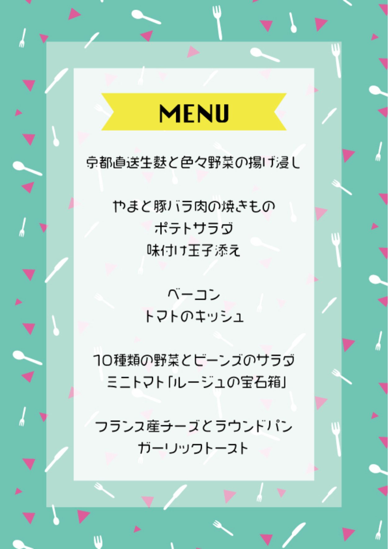 カフェポルカにて、年2回開催されていたオーナー様の友人でありジャズシンガーの西村 協さんのライブ用に出すお食事のメニューを制作しました。