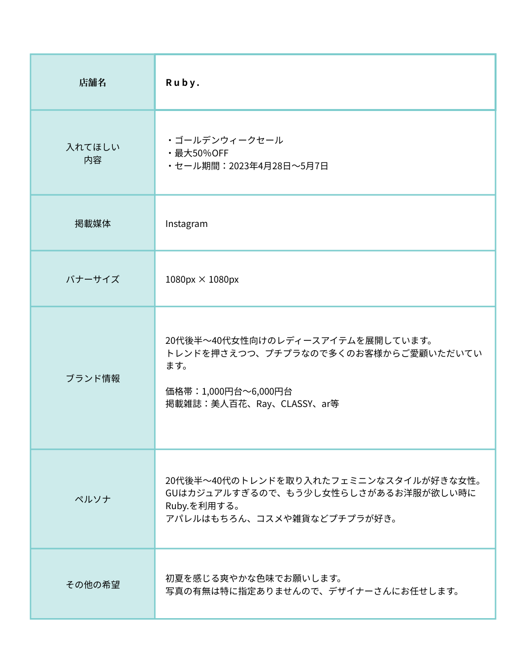 ・Instagram内で一瞬流れてくるだけで、広告内容が分かるものにしたかったので情報を短くまとめ、明るい色味と大きめの文字でセールをアピールしました。