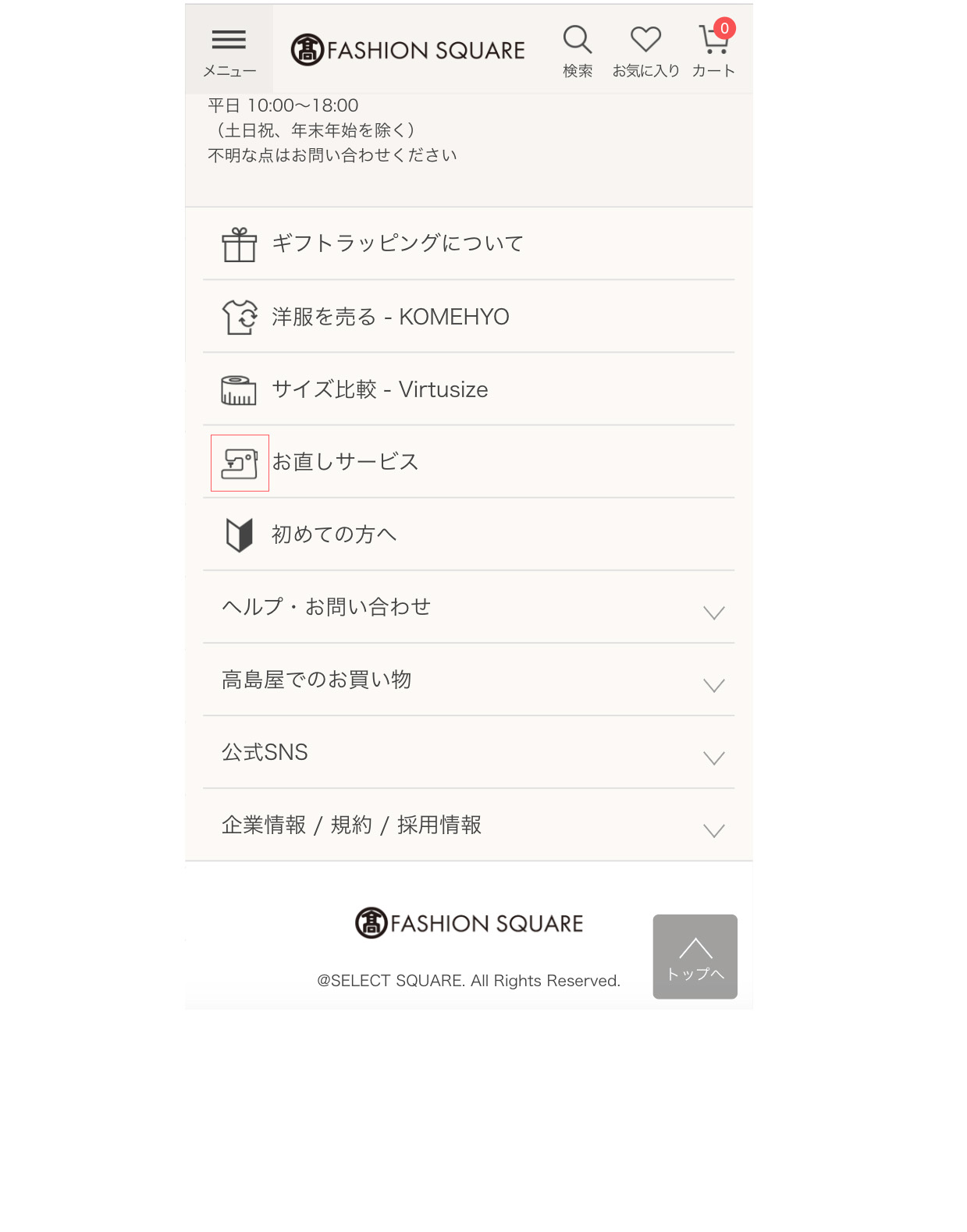 お直しサービスは、ズボンのすそ上げをするサービスです。そのサービスをミシンのアイコンで表しました。