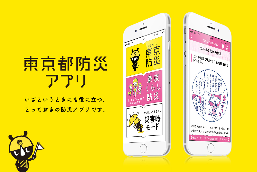 東京都が2015年9月から、都内各家庭に配布した防災ブックである「東京防災」 デジタルの特性を最大限活かしたアプリケーションとして制作。 一部デザインとアニメーション、イラストを担当。