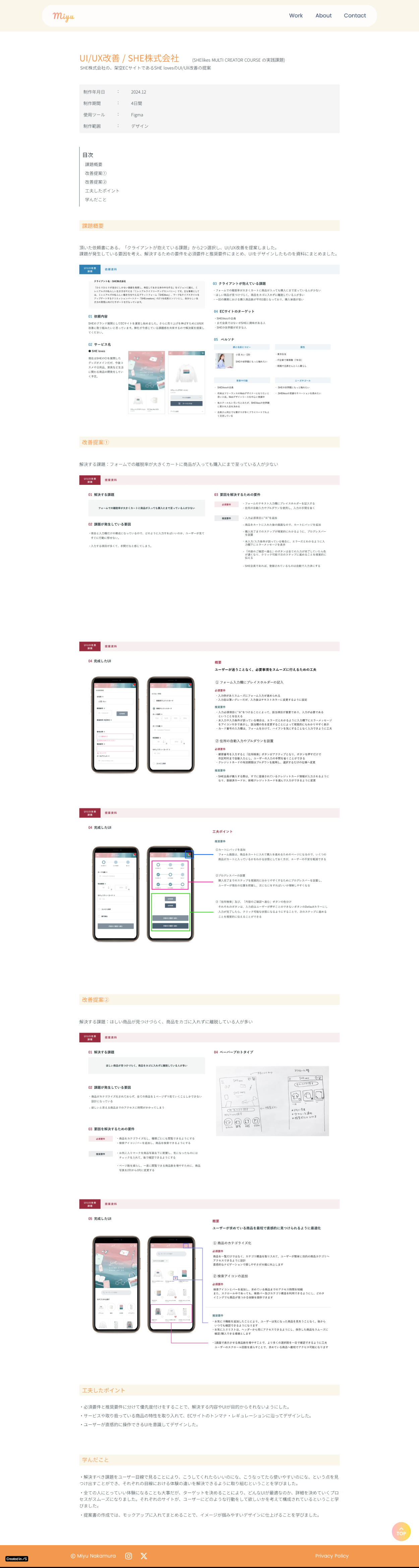 UI/UX改善/架空ECサイト Miyu Nakamura #WEBデザイナー #フリーランス #兵庫県在住 OVERVIEW SHE株式会社の、架空ECサイトであるSHE lovesのUI/UX改善の提案