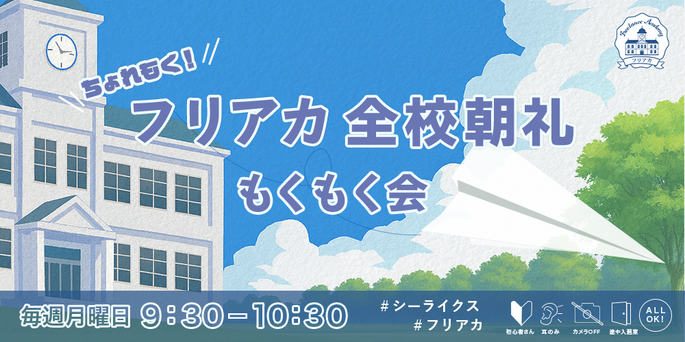 コミュニティサブイベントバナー よっしー ライター デザイナー OVERVIEW オンラインのキャリアアップスクールのコミュニティのサブインベントバナー 学校をモチーフにしたコミュニティーのイベントで、夏の月曜の朝をイメージした爽やかな青をイメージして作成しました!