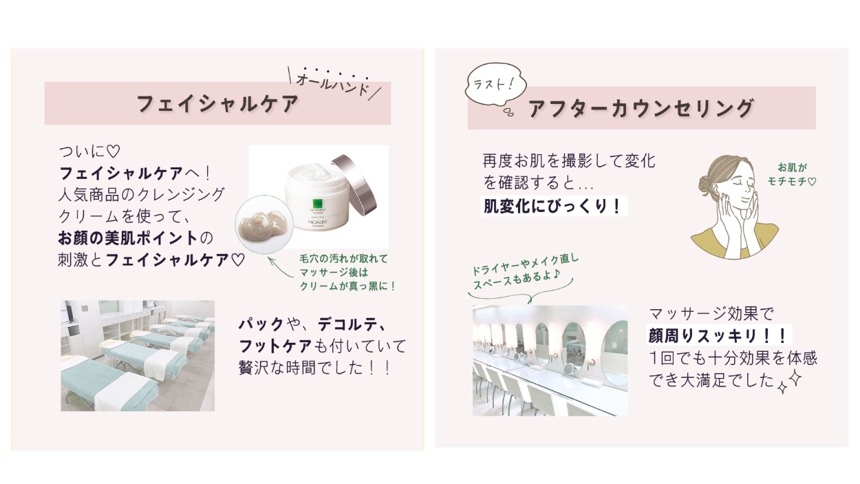 ■素材:エステ体験にて撮影した写真、公式サイト・SNS上の写真などを主に使用