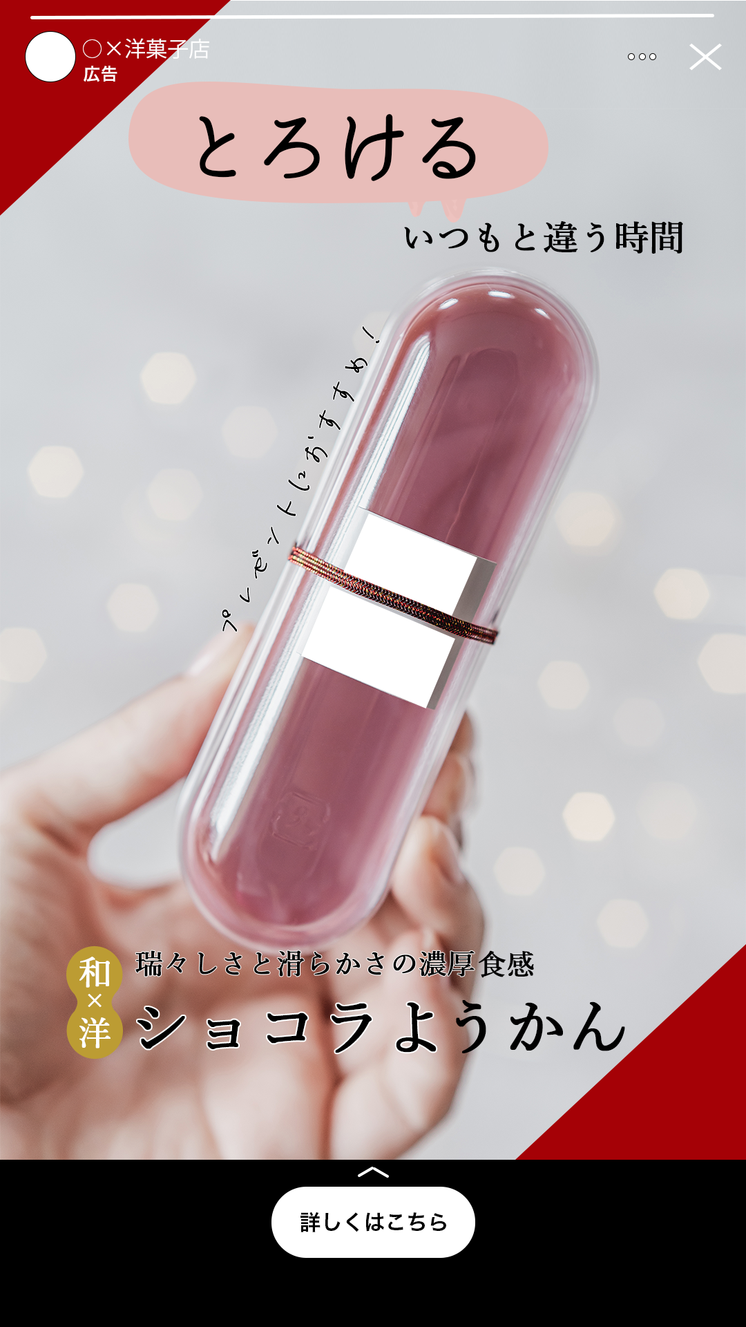 - オンライン販売できる商品「ショコラようかん」のインスタストーリー広告配信クリエイティブ制作