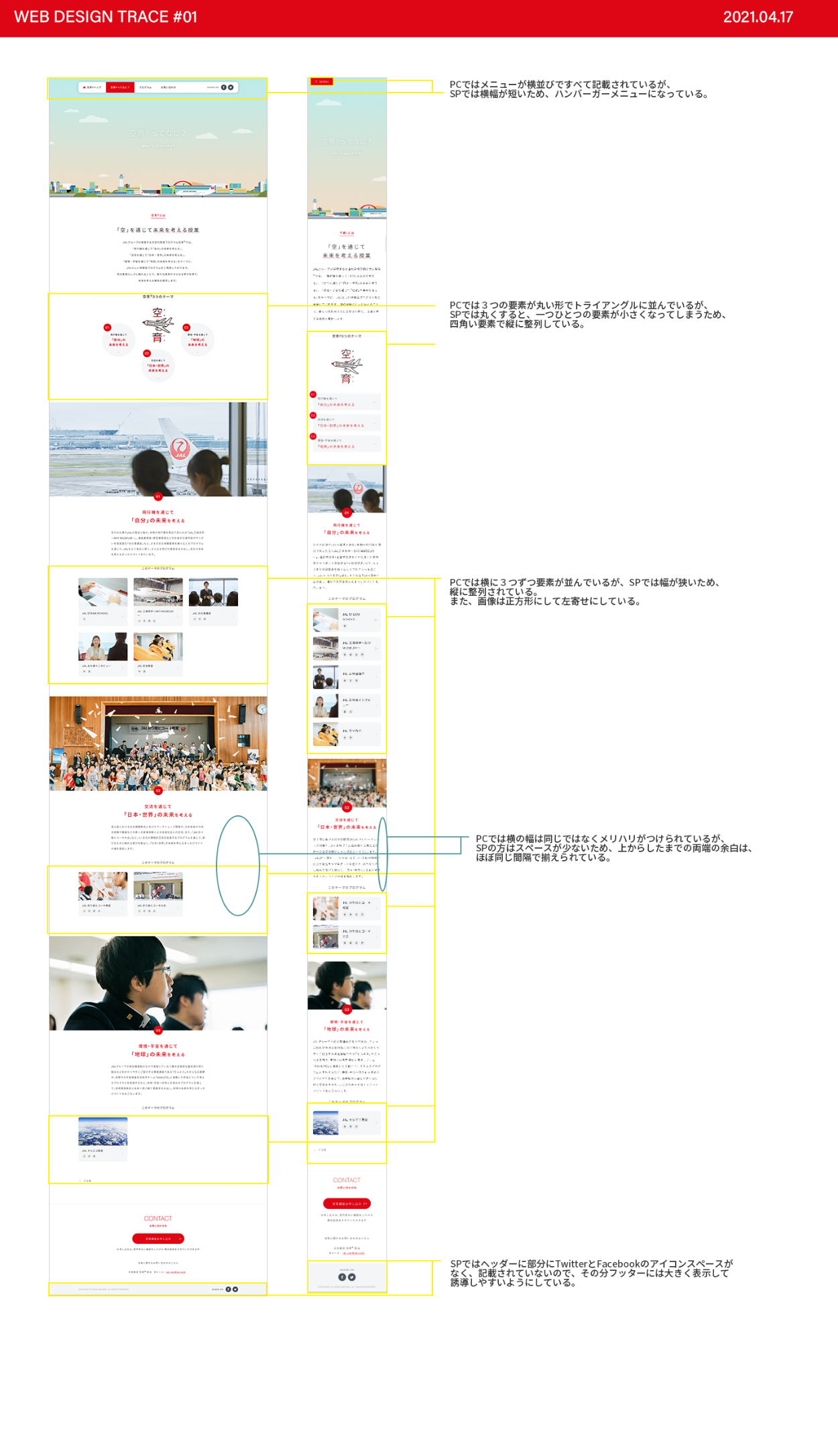 - 文字の影の色や細い線も何色で設定されているか、FB会で教わりながらも細かくトレースした。TOPに使用されていた画像は、画像の中で飛行機が動くようになっていて、何枚もの画像が重なっていたが、一枚ずつ丁寧にトレースし、背景の空の色もグラデーション加工で設定しました。