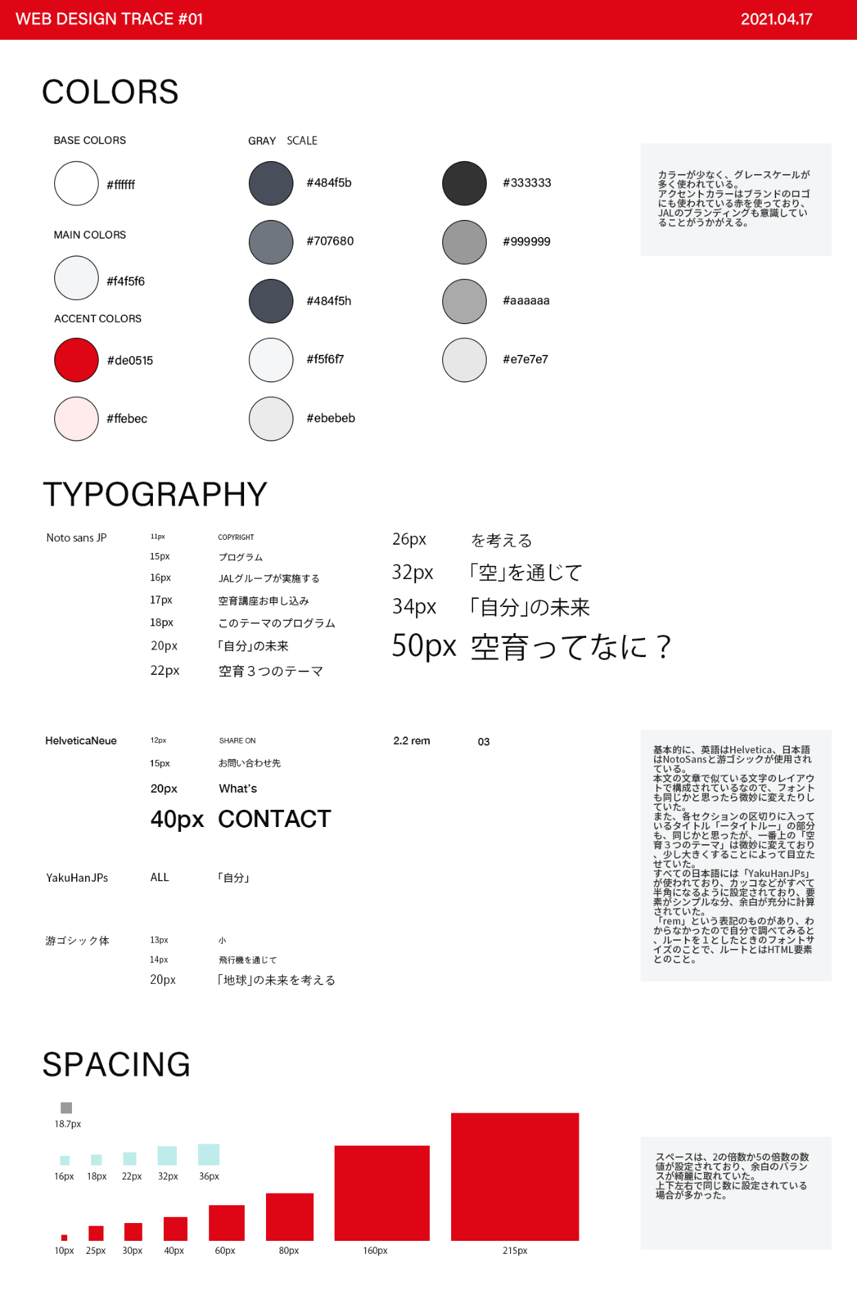 ③見本WEBサイトはシンプルながらも伝えたいことなどはきちんと読みやすく要素が配置されており、色の使い方もグレースケールを駆使していたり背景と差をつけるために文字に薄く影をつけていたりと、細かい部分で沢山の工夫がされていることに気づくことができました。