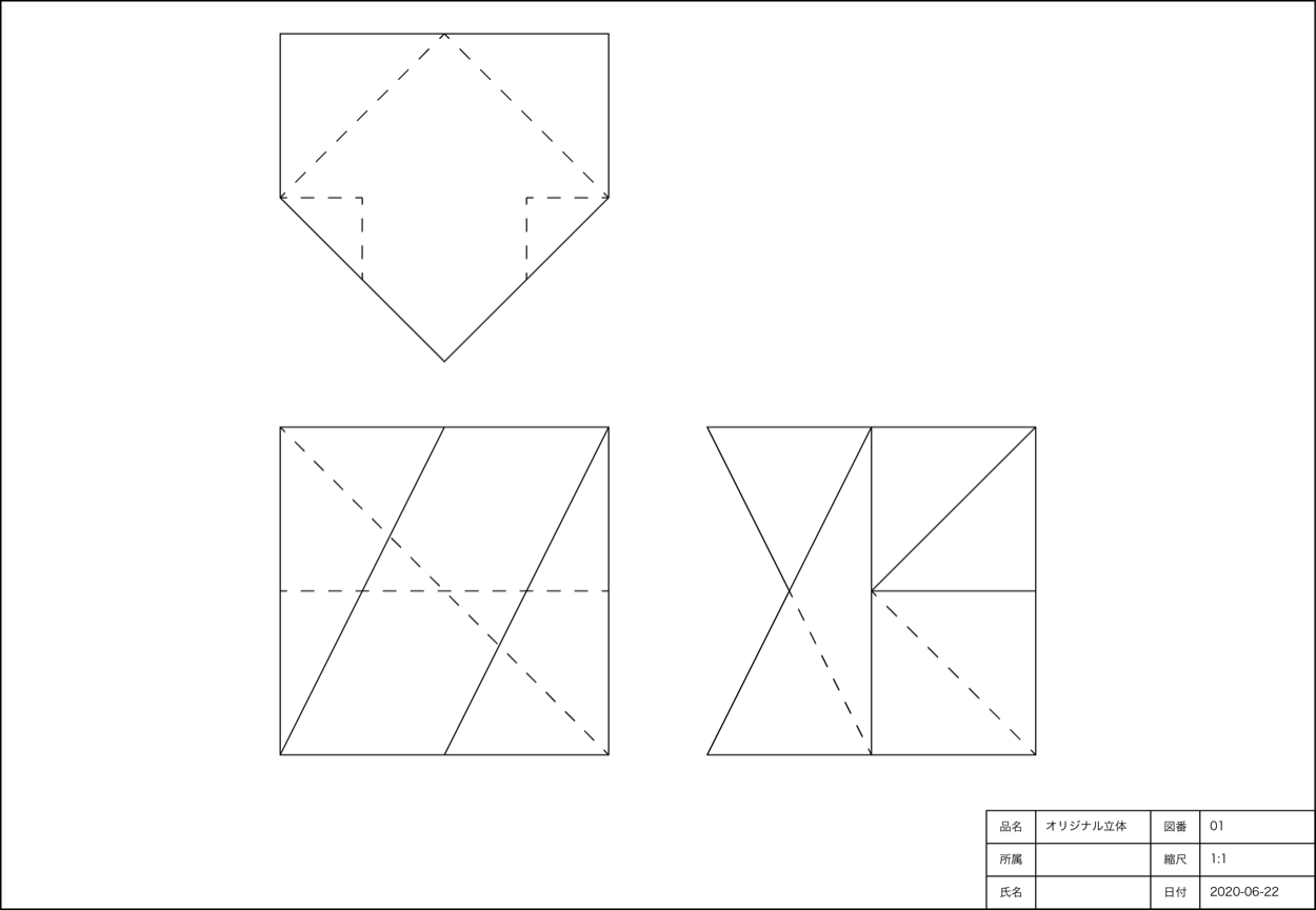 立方体に直線や曲線を加え、オリジナルの立体を作りました。