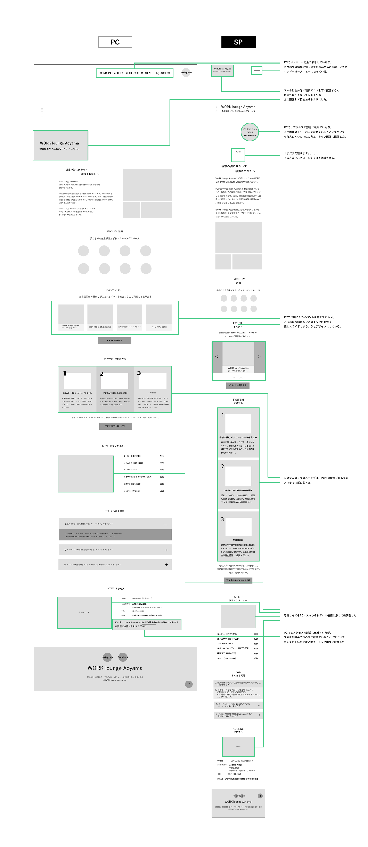 =SHElikes MULTI CREATOR COURSE 課題= クライアントからの要件書とPCのワイヤーフレームを元に、スマホのワイヤーフレーム作成とPCのデザインカンプを制作しました。
