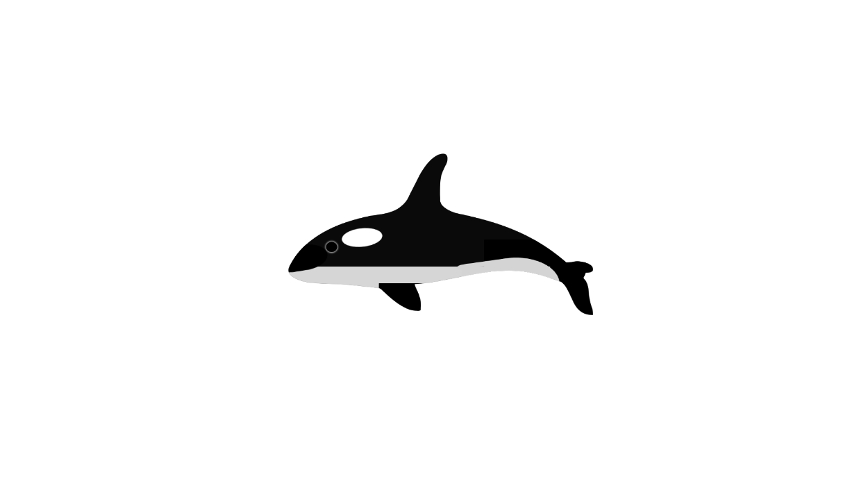 制作方法:黒のシャチのシルエットを何枚も重ね、クリッピングマスクなどを使い、レイヤーの順番を整えることで、まず大枠を作成しました。その後、必要な選択範囲を作成し、白に補正しました。最後に、目と顔の部分を楕円形ツールで作成しました。