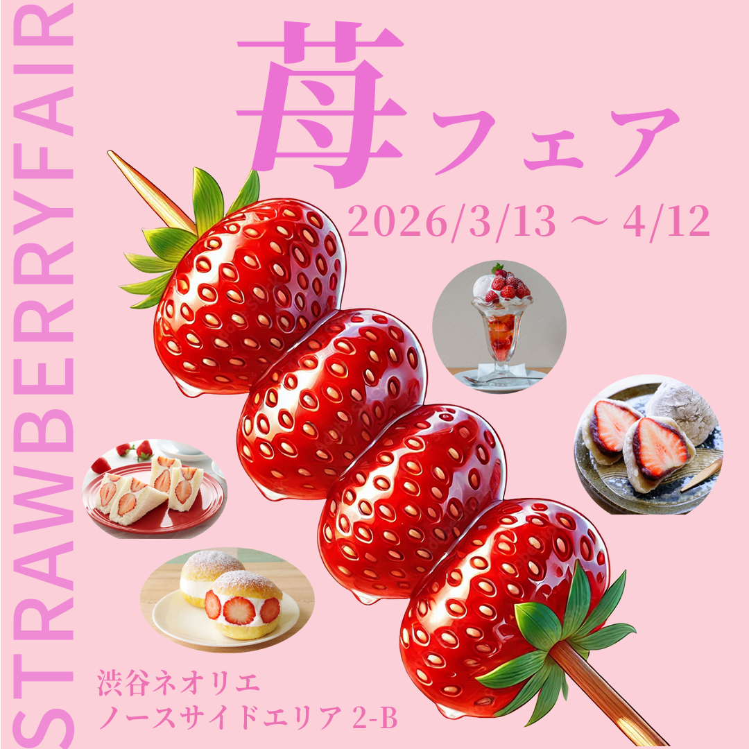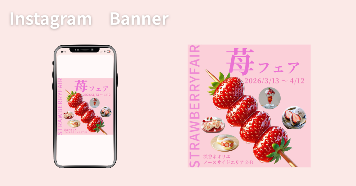 苺をテーマとしたフェアのため、最初に苺のインパクト感を出すために中央に大きく配置しました。
