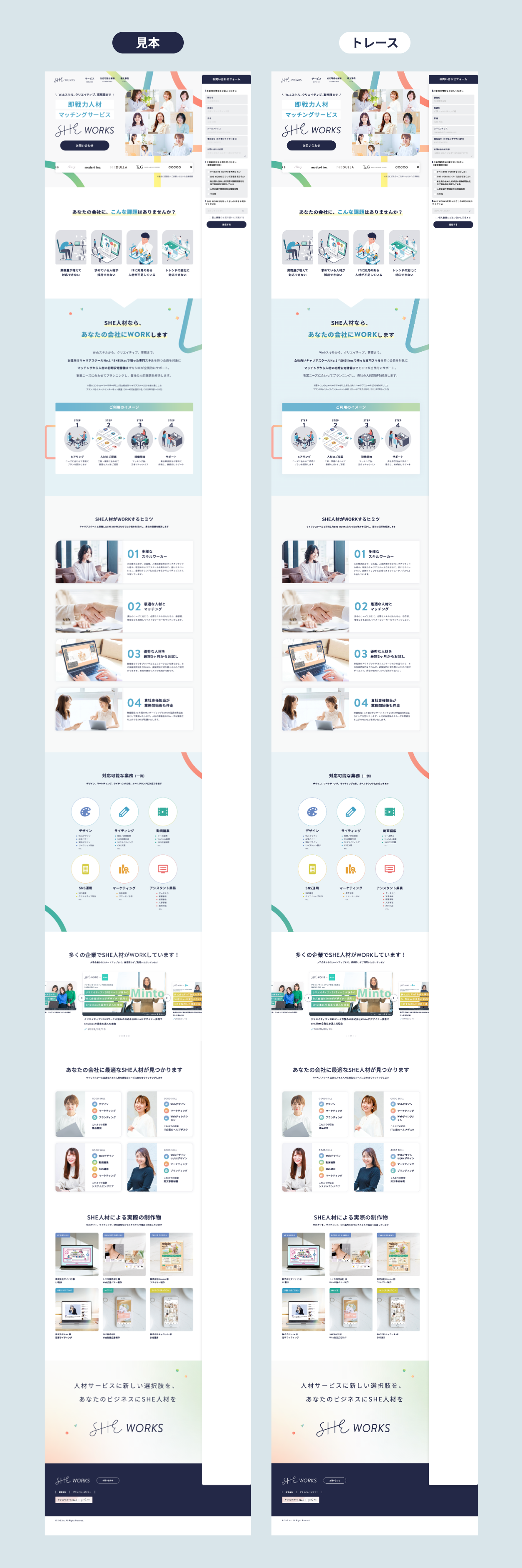 SHE株式会社が運営するSHEWORKSのLPをトレースしました。