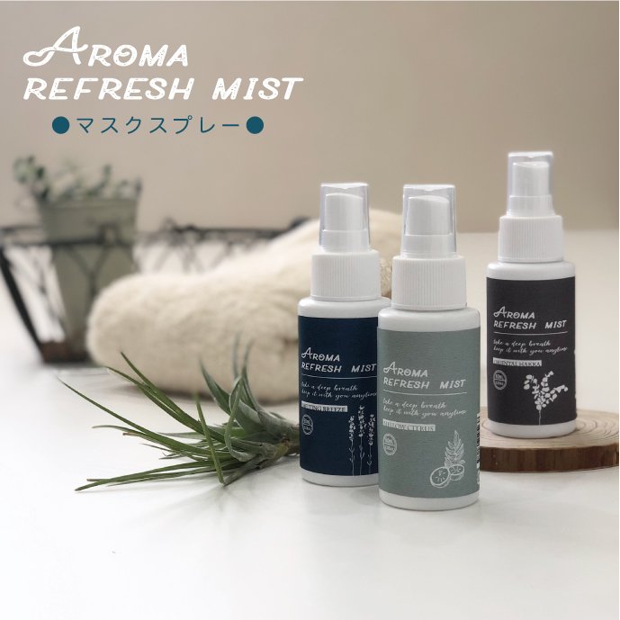 衛生用品① kt デザイナー OVERVIEW 商品画像やサムネイル、ラベルデザイン YEAR 2019 アロマミスト(マスクスプレー)キャッチコピー:マスクにシュシュッとリフレッシュ価格帯500〜700円
