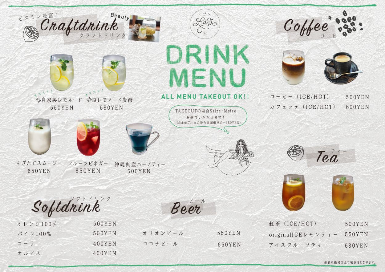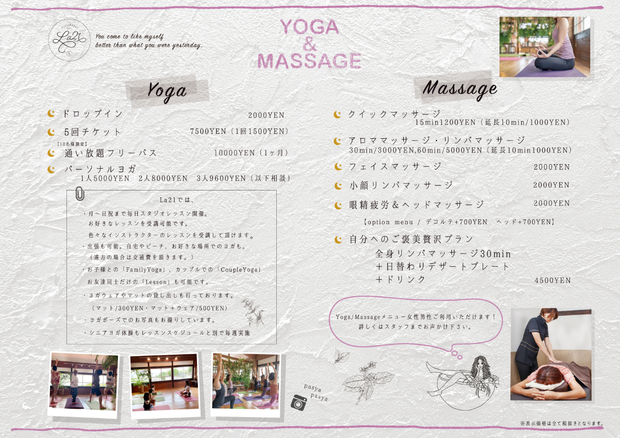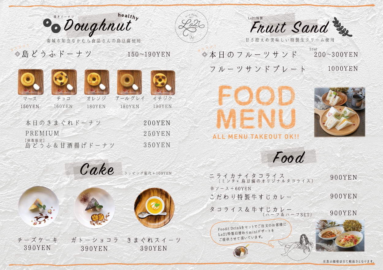 ・沖縄県にあるカフェとヨガ教室を併設したLA21様のメニュー表制作の案件でデザインから全て制作したものです。