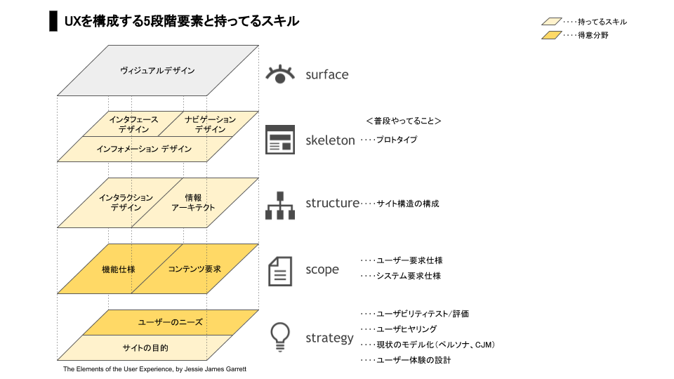 ギャレットのUXの図で、持ってるスキルと得意分野を可視化してみました