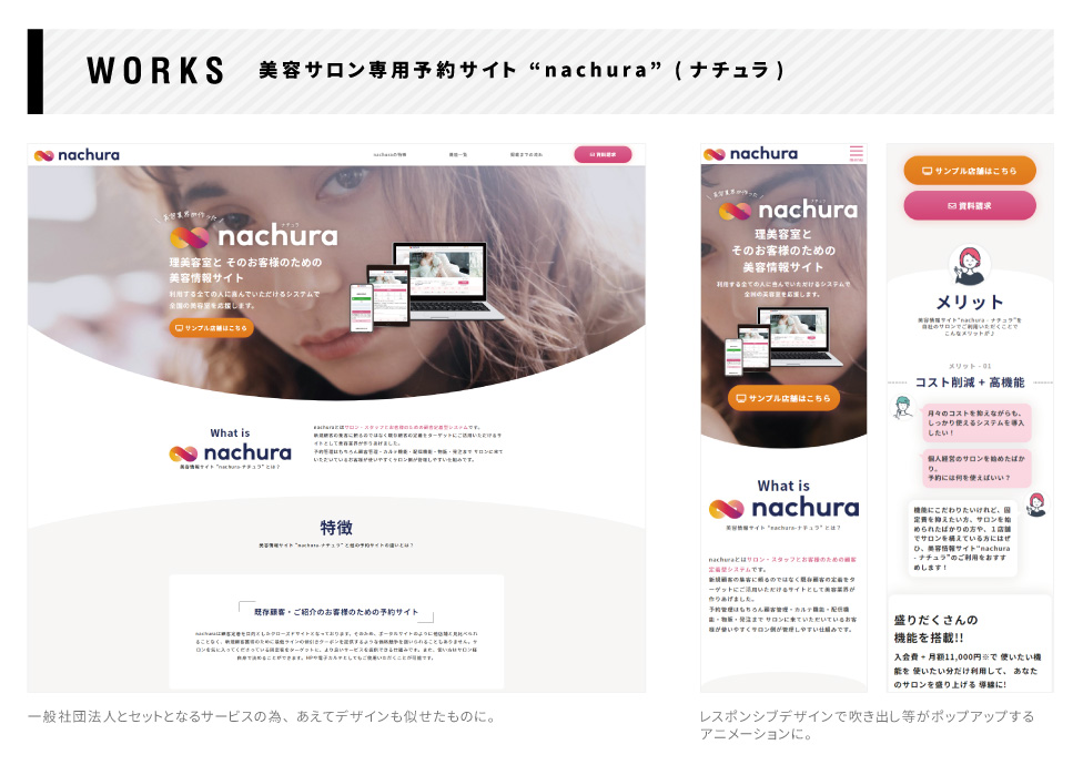 社内で開発した美容サロン専用予約サイトの紹介LPを制作。ワイヤーフレーム作成からHTMLコーディングまで約2週間で制作。