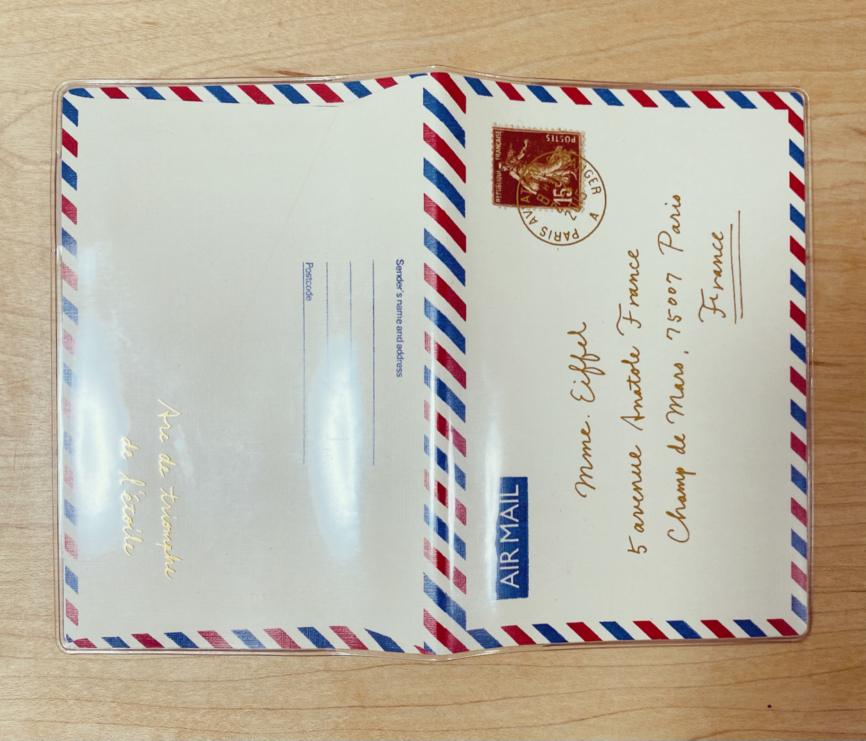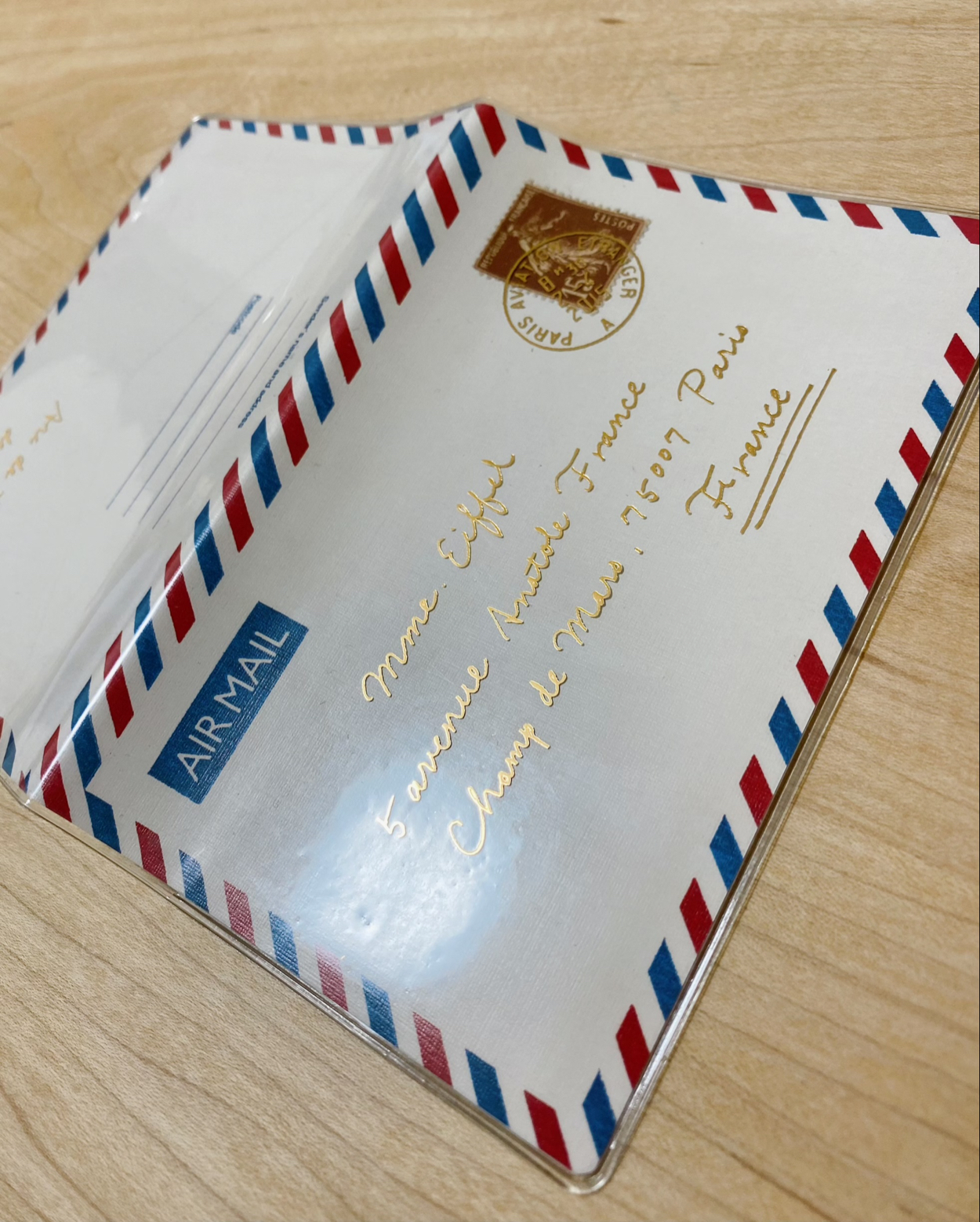 エアメールダイアリー hiroko kimura 企画デザイン OVERVIEW 商品 手帳 Monthly A6 Diary Airmail YEAR 2013 海外の紙ものが好きで収集していた中で、特にエアメールのデザインが気に入っていたのでモチーフにしました。4色印刷の紙+透明カバーに艶消し金箔で少し立体感を出して気分が上がるように。ちなみに、宛先はエッフェル塔になってます。