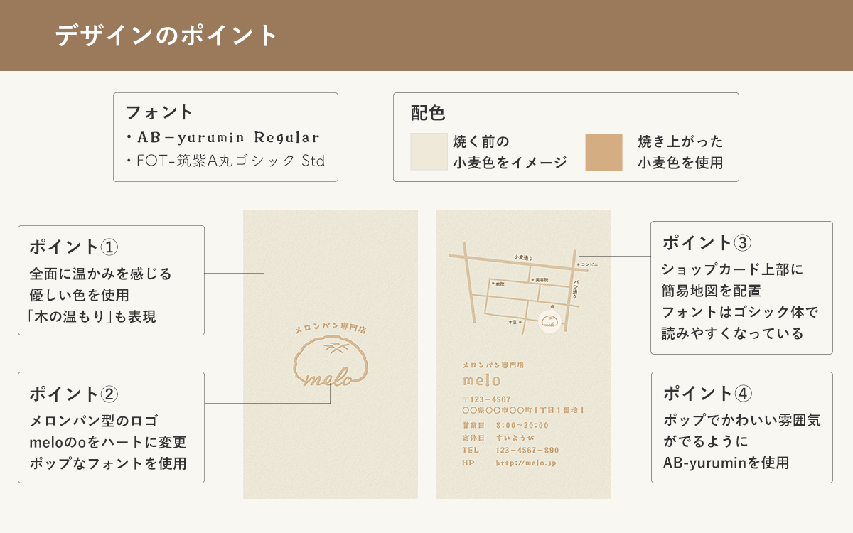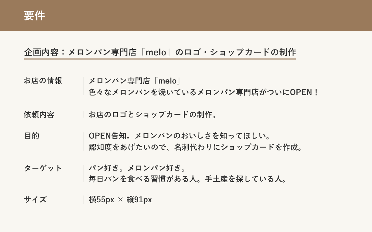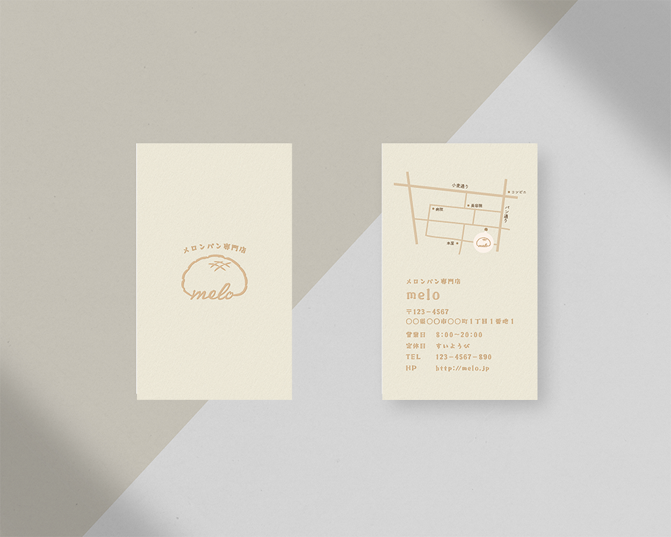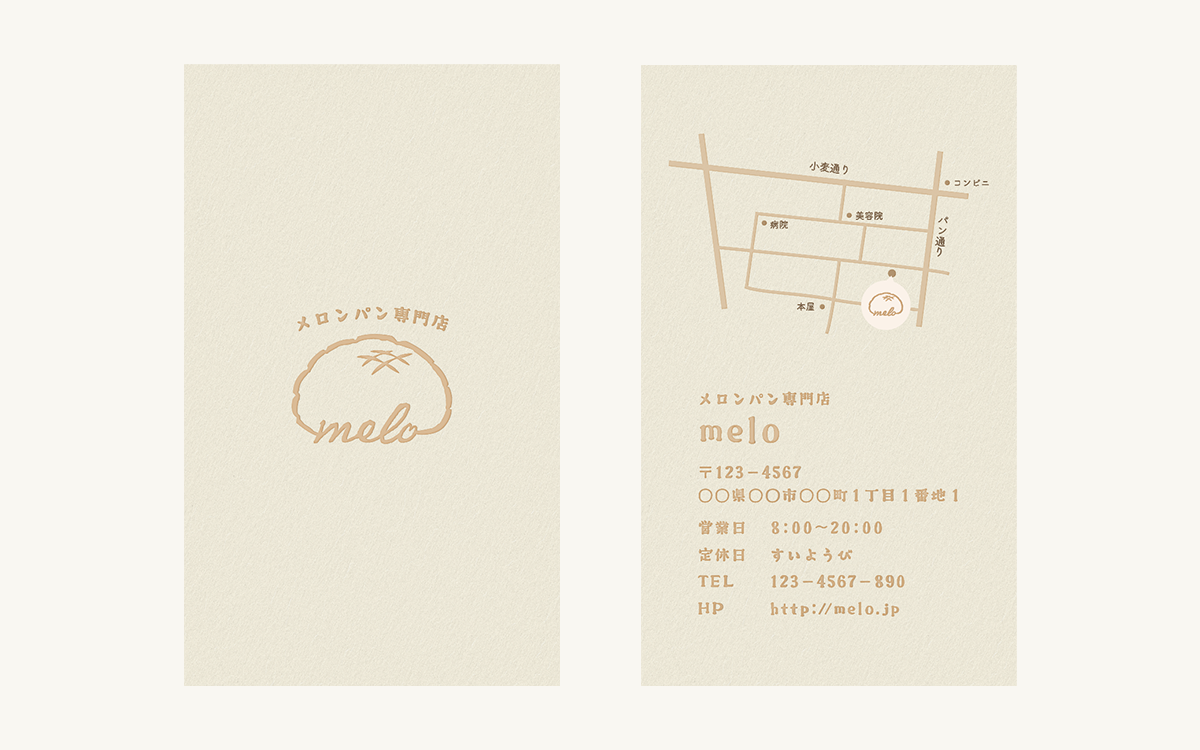 自主制作。メロンパン専門店「melo」のロゴデザイン、ショップカードを制作。 制作時期:2024年2月 制作期間:3日間 使用ソフト:Illustrator・Photoshop