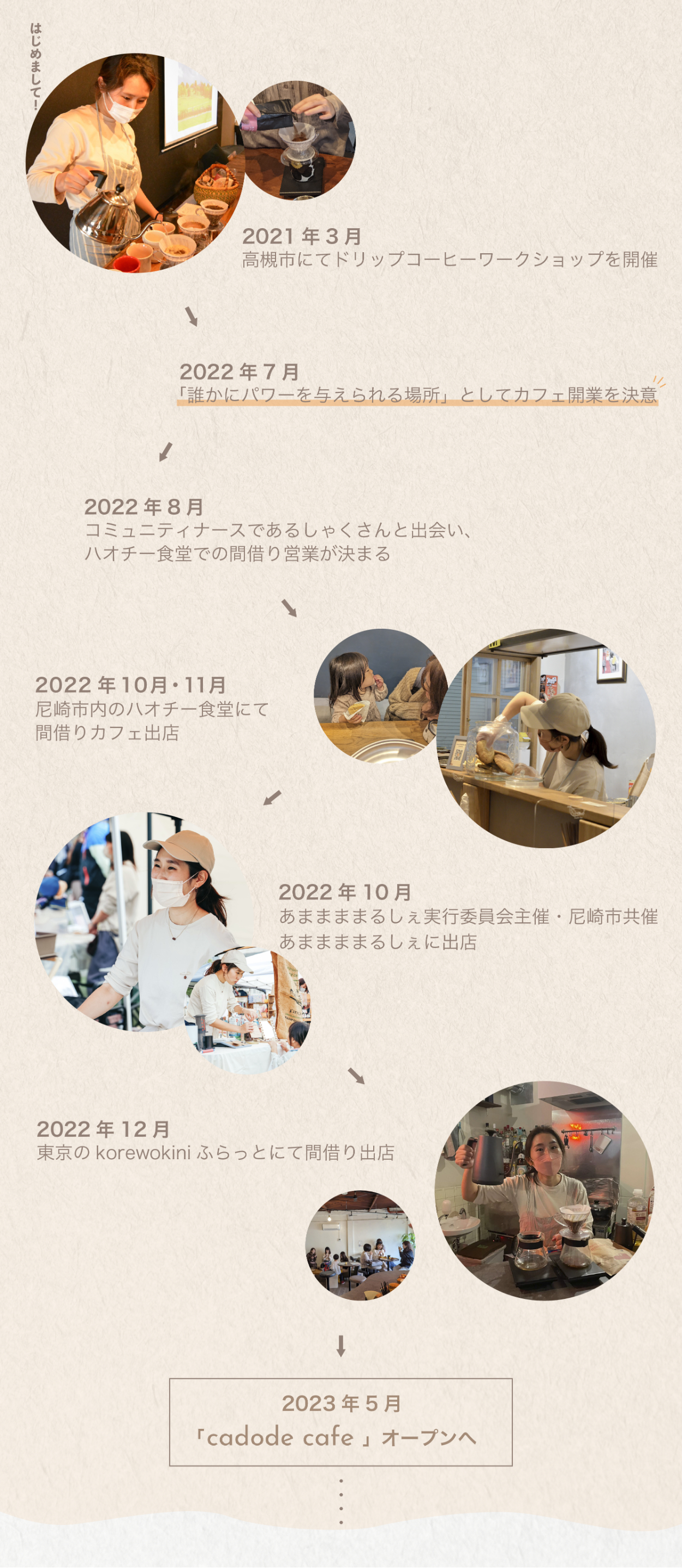 - イメージカラーのオレンジ〜ピンクのグラデーションに加えて、文字はカフェを連想できるようブラウンの落ち着いたカラー
