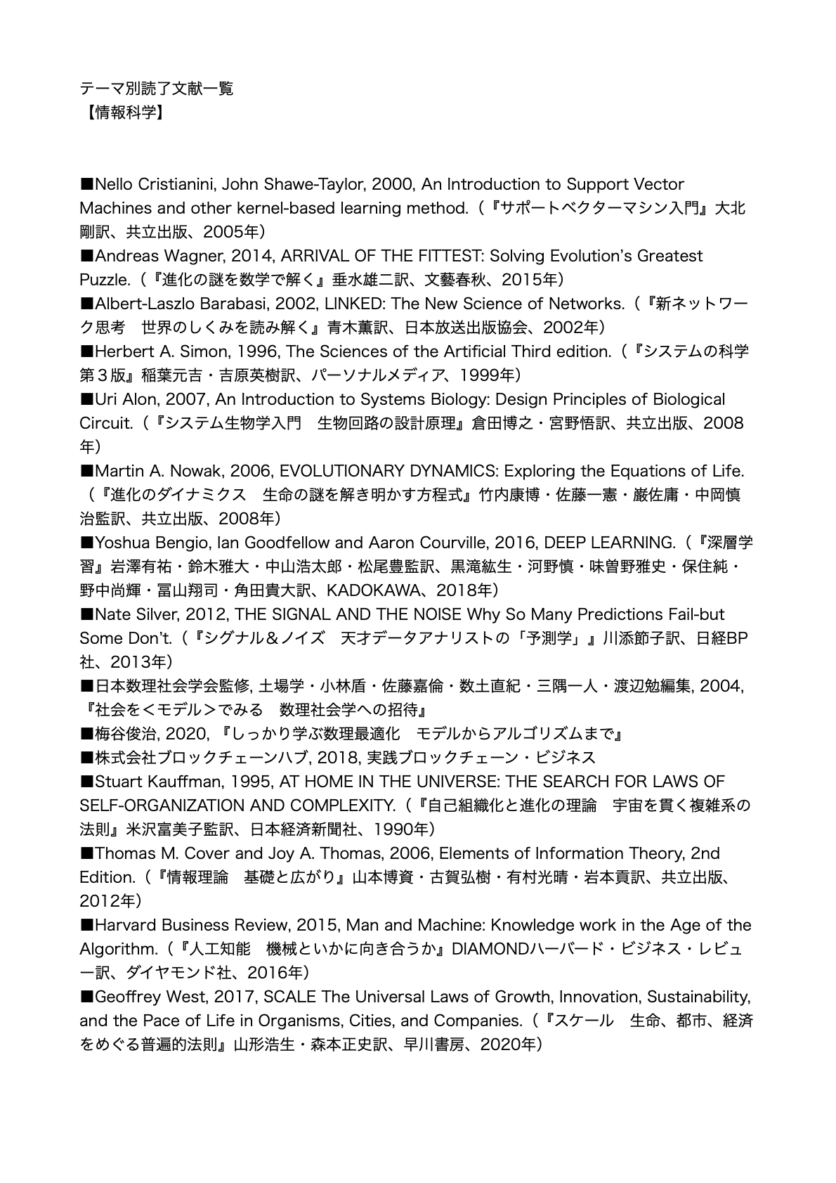 *詳細リンク:テーマ別読了文献一覧【情報科学】