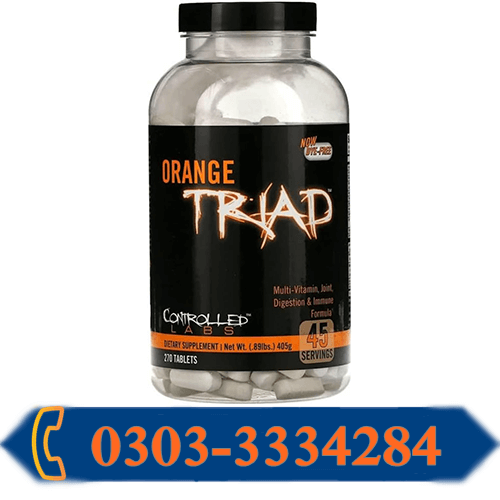 Orange Triad in Pakistan designed for the intense athlete, Orange Triad delivers! Serious athletes are unique in this they intentionally subject their bodies to incredible amounts of stress with training and cardio. Over time, muscles, tendons, and ligaments take longer to recover which means you can’t train them as often as you'd like. Nutritional support is key to getting optimal results from your training. Orange Triad combines key vitamins, minerals, and nutrients for supporting optimal digestion, immune system and joint health into one “twice daily” dietary supplement. The Joint and Flex Complexes help lubricate joints and cartilage as well as increase the resiliency of connective tissue. While the Digestion and Immune Complex includes digestive aids and nutrient partitioning agents to require your performance to future level.