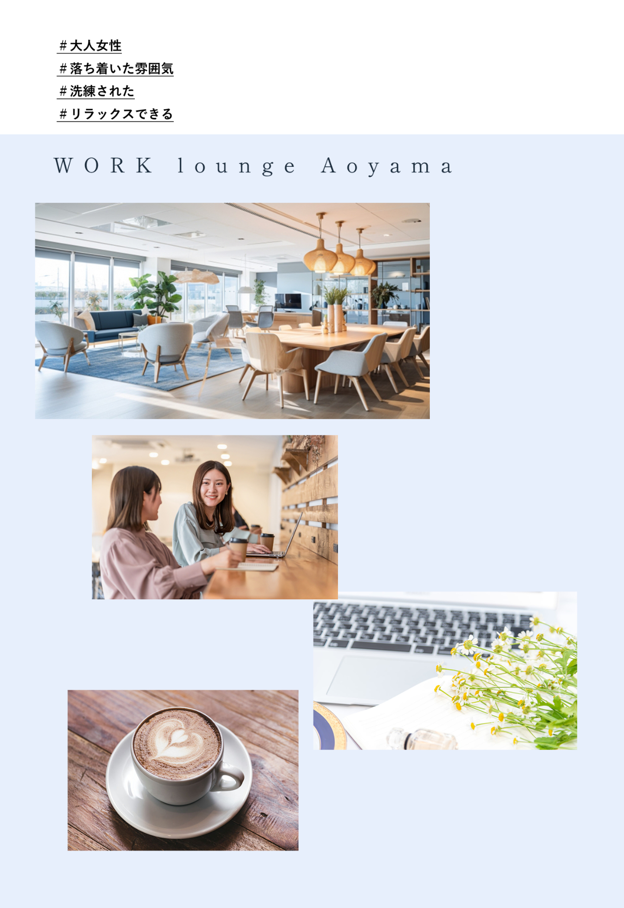 ②コワーキングカフェの雰囲気が伝わるような写真を入れ、どんなところで何ができるのかを伝え、足を運んだ時のイメージが湧くようにしました。