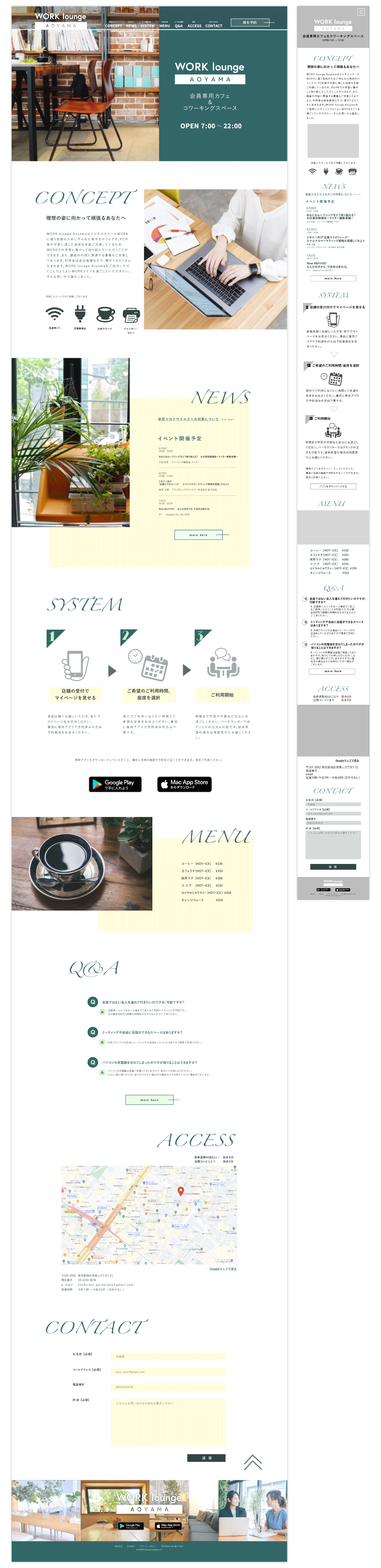 既に利用している人は 、席の予約をしたい・どんなイベントをやるか見に来ることが予想されるため、ヘッダーに予約ボタン、上部にNEWSの配置をしました。また、更新歴があれば稼働している場所と認識されるため初見の方へのアピールでもあります。